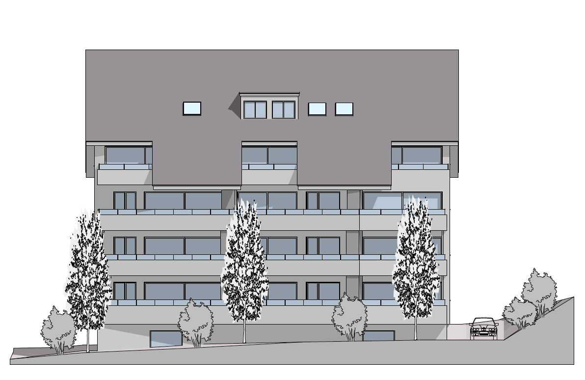 Auf dem Grundstück befand sich zum Zeitpunkt des Erwerbs eine Bestandesliegenschaft mit insgesamt 4 Wohneinheiten. Aufgrund der Unternutzung des Grundstückes wurde eine Machbarkeitsstudie für einen Neubau mit bis zu 14 Wohneinheiten projektiert.
